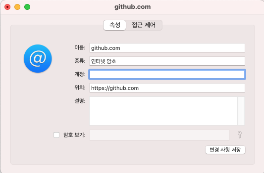 3. 계정 부분에 사용하고자하는 github 아이디 입력